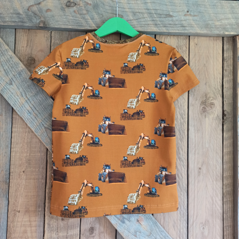 Voor de stoere kids onder ons, dit t-shirt met voorop een afbeelding van een shovel en op de achterkant kranen.