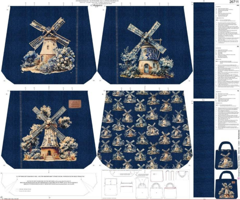 Maak deze typisch Hollandse tas van Stenzo stof helemaal zelf. Eenvoudig te maken. De tas bestaat uit 4 verschillende digitaal geprinte panelen. Je bepaalt zelf hoe je de tas samenstelt. De tas is omkeerbaar. Je kunt er ook voor kiezen om een andere voeringstof te gebruiken, zodat je 2 tassen hebt. Hoe leuk is deze tas als cadeua?