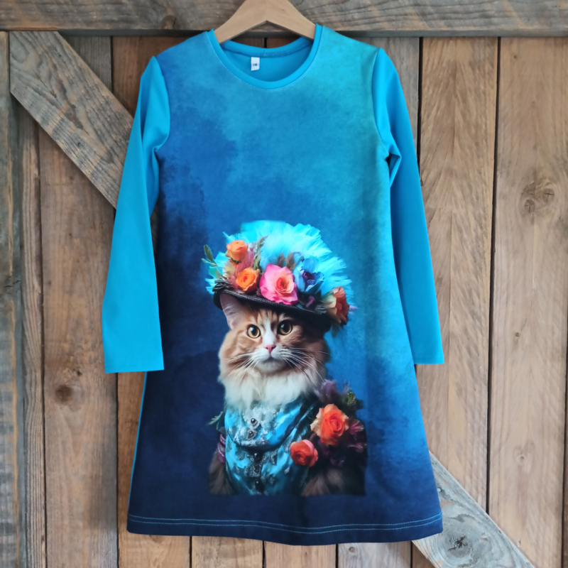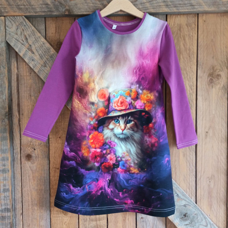 Deze prachtige french terry stof heeft een fantastische print, eigenlijk 3. Het is een 3-luik. Combineer deze evt met een effen stof. Leuk als jurk of shirt.