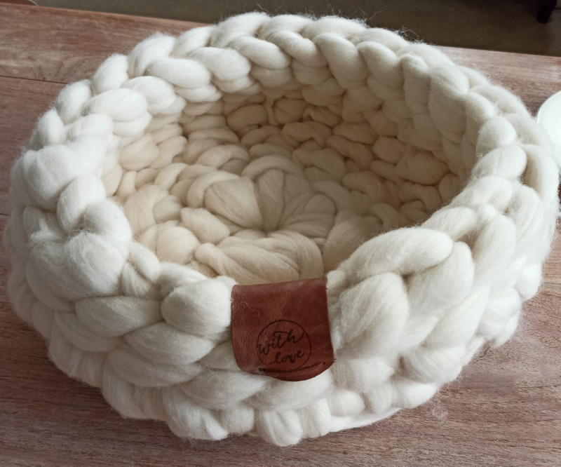 Gehaakte lontwollen mand ivoor