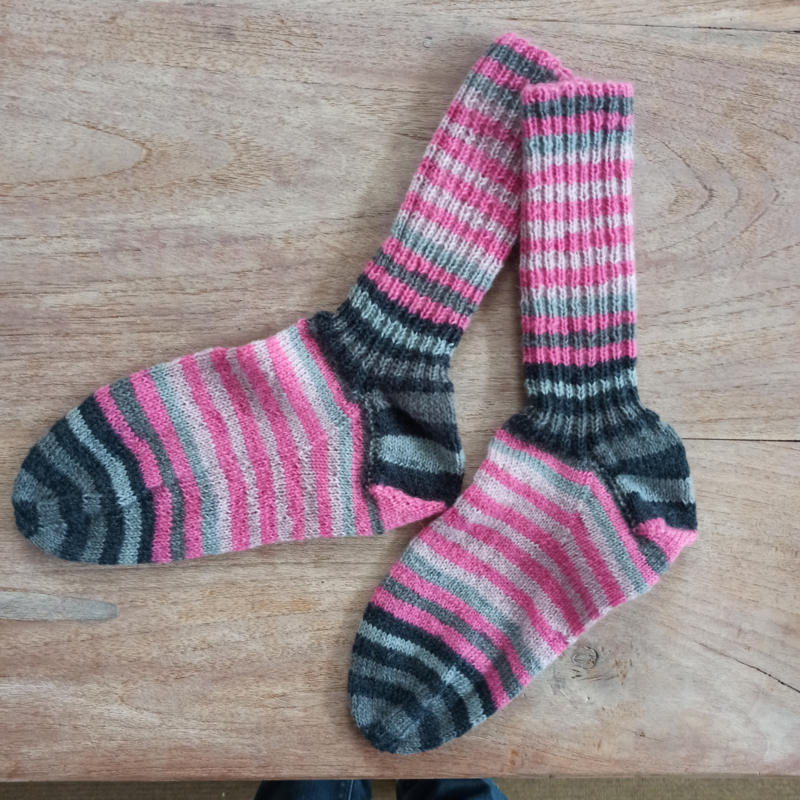 Handgebreide sokken in maat 39 van 75% wol en 25% polyamide.